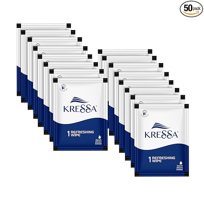 Kressa Refreshing and Cleansing Wet Wipes | PH Balanced | 1 X 50 pouch (50),